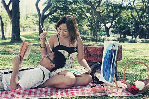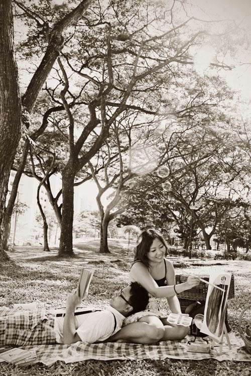 The couple chose a park down the road from their apartment in Singapore as the location as they themselves and the props they used were really the main focus of the shoot.