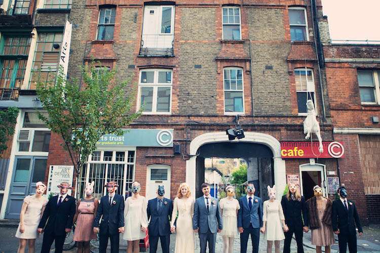 “We did everything we wanted do and didn’t care if anyone else thought it was right,” the couple explained. “We put together all of our loves and didn’t worry about a colour scheme or any thing particularly weddingy, we love autumn and Halloween and London and glamour and silliness and fur and penguin books and skulls so we chucked them all in. Is that Rock n Roll??!”