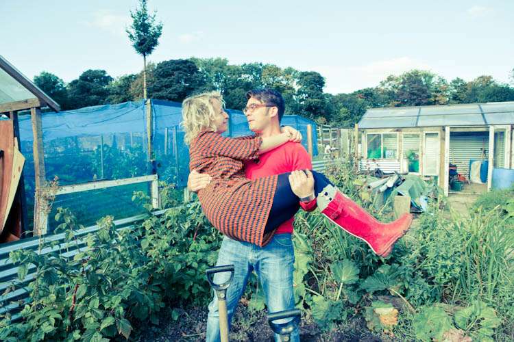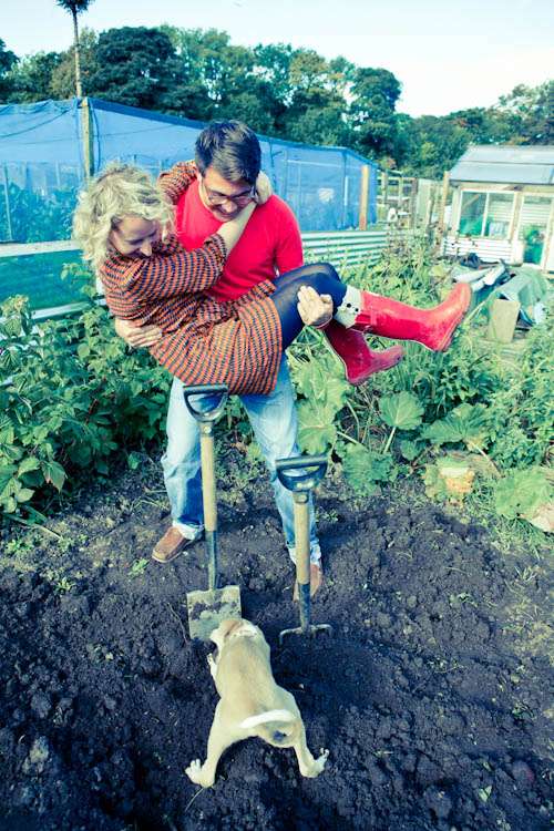 Getting down n dirty at their allotment was the name of the game for Vonney, Tristan and Boo’s (the dog) pre-wedding shoot. A reflection of how they live their lives on a daily basis, photographer Caroline was keen to bring this realism into their session.