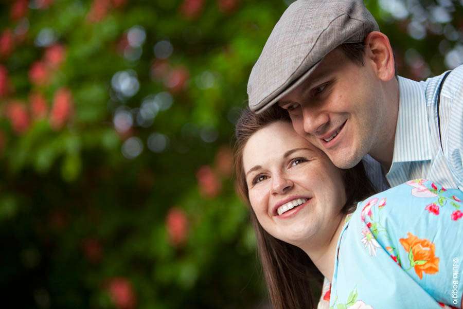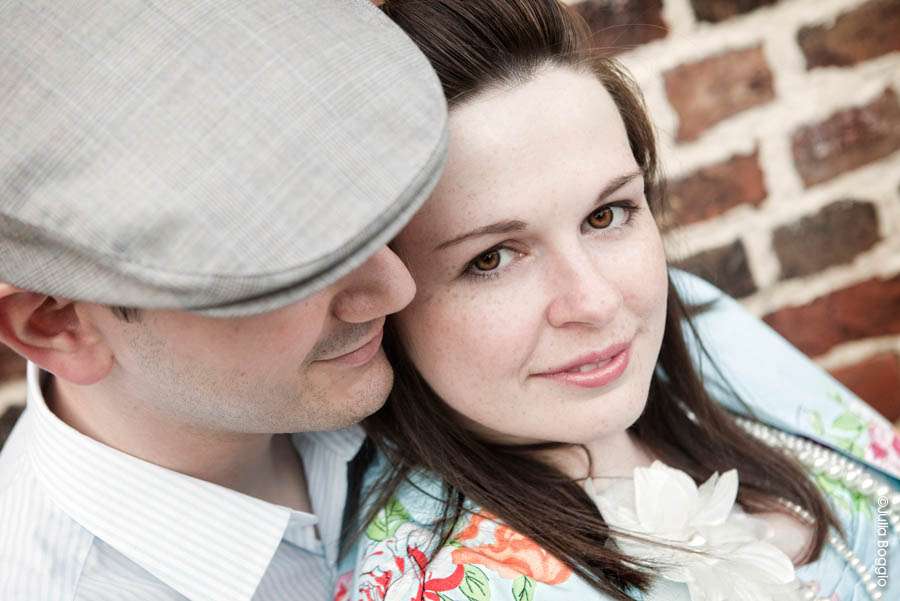The inspiration for Caroline & Ian’s engagement session was Caroline’s gorgeous Vivien of Holloway dress. “‘I’d worn it for my brother’s wedding in California a couple of weeks before,” Caroline explained. “It was such a wonderful outfit to wear that it was the obvious choice when I came to select an outfit for the shoot, and that set the whole style. I also wanted a deliberate contrast to the style of our wedding.”