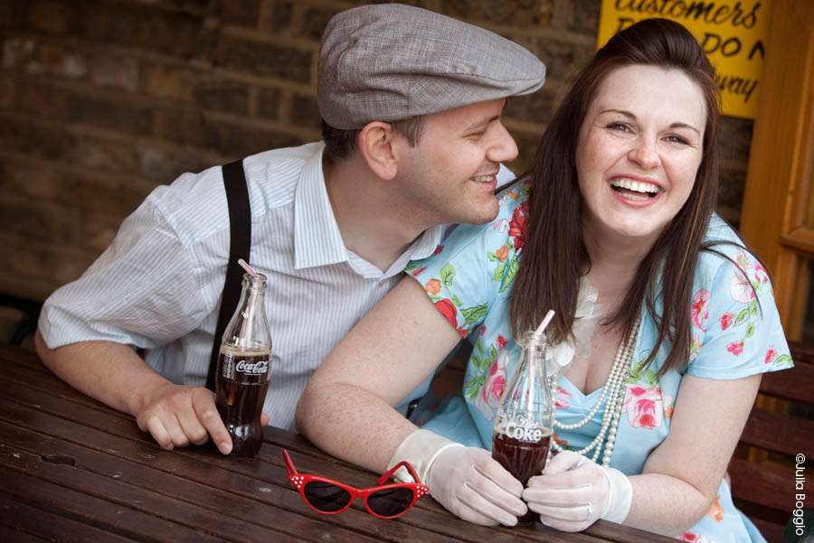 To match up with Caroline’s style, photographer Julia Boggio was more than thrilled to accessorise Ian. Julia is a massive fan of all things vintage and has a studio full of props perfect for vintage styling (I know – I’ve had the treatment myself!)