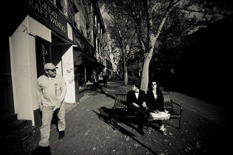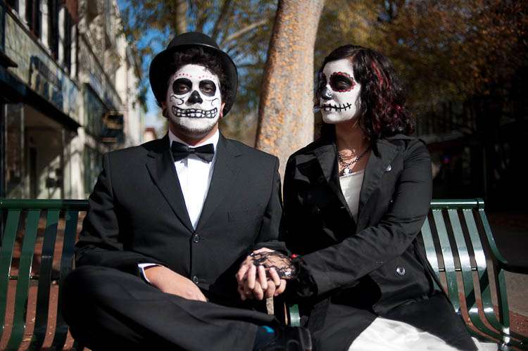 “I wanted to do a Trash the Dress shoot because… well… you only live once, and I wanted to do something that I could remember, and look at the pictures down the road, and say “I’m glad I did that, that was so much fun”. The Day of the Dead seemed like it would be really fun to do. We wanted to do something completely non-traditional, something a little off-the-wall, something with a bit of shock value (which we definitely got when we went into town with the makeup on, plenty of stares, scared children, it was really funny), and this was the perfect opportunity. We were actually planning on changing out of the Day of the Dead stuff and do a normal Trash the Dress shoot halfway through, but… it was too much fun, so we decided to stick with it.”