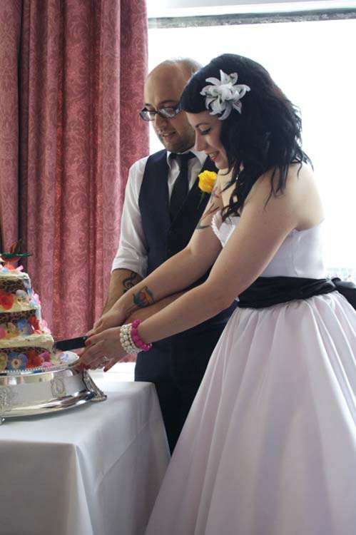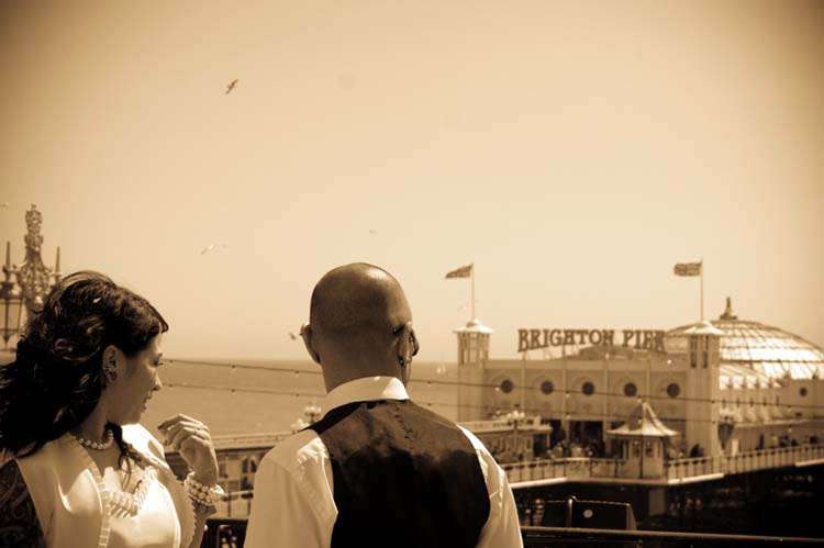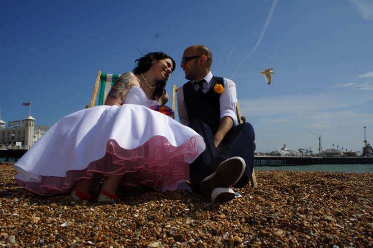“We also wanted the ultimate Brighton wedding,” she continued, “and we lucked out getting booked in to the Royal Albion Hotel right in front of the pier for our ceremony and reception. The pier was our backdrop for the entire day and night. It was awesome when it lit up at night!!”