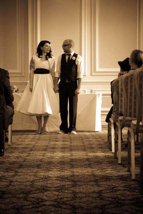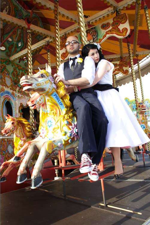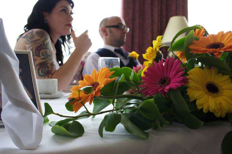 Brighton was the location for Jessica & Forbes’ rockabilly wedding this summer. They chose May 1st as their date as it was Jessica’s late Grandmother’s birthday and having it on this day was their way of inviting her to the wedding. All the guests were invited to dress up in their finest retro get-up,” Absolutely everyone joined in,” the bride told me, “We were so convincing a hotel guest asked if we were a convention!”