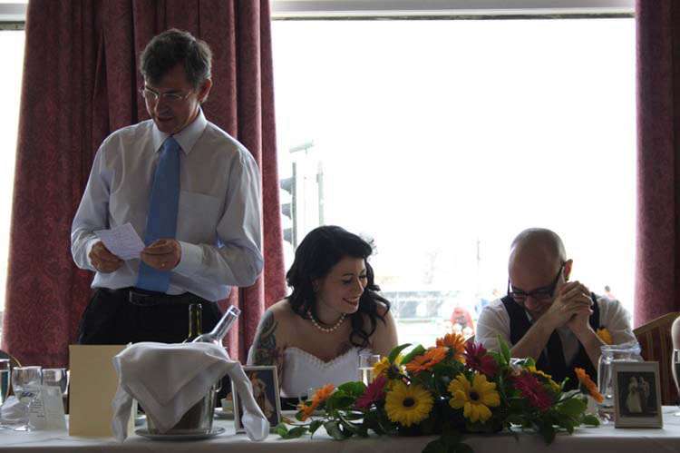 Jessica wore a 1950’s replica dress from Unique Vintage, Vivienne Westwoodshoes and a vintage pearl necklace that had belonged to her Grandmother. The bridesmaid wore bespoke dresses made by Jessica’s Mum and Forbes wore a genuine 1950’s suit that had belonged to his Grandfather.