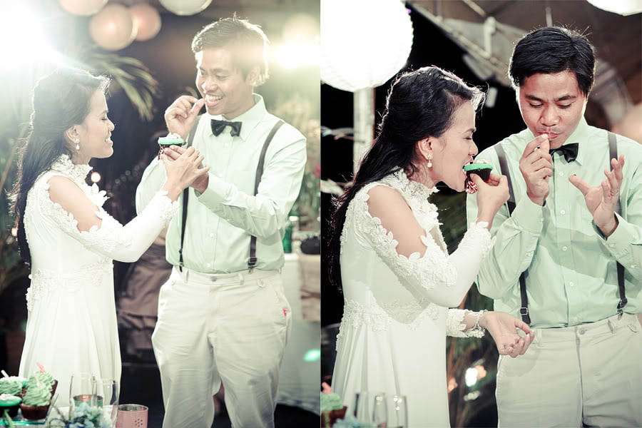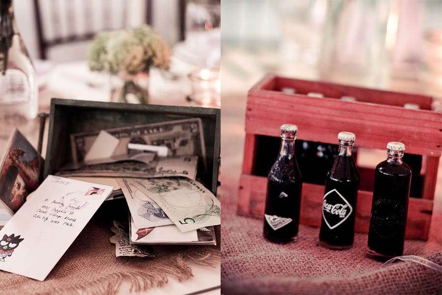 Finally, the couple threw a “Best Vintage Attire” contest to help their guest get into the theme. ” We wanted to encourage them to wear as much as vintagey tones in line to our wedding theme,” Josephine explained. “At the end of the party, we awarded the best one with a vintage mini-jukebox radio I had bought. For the rest of the party, we threw out questions on ‘How will you know the Bride & Groom? And anyone who got an answer correct was allowed to pick any quirky item decorated from the centerpieces to take home.”