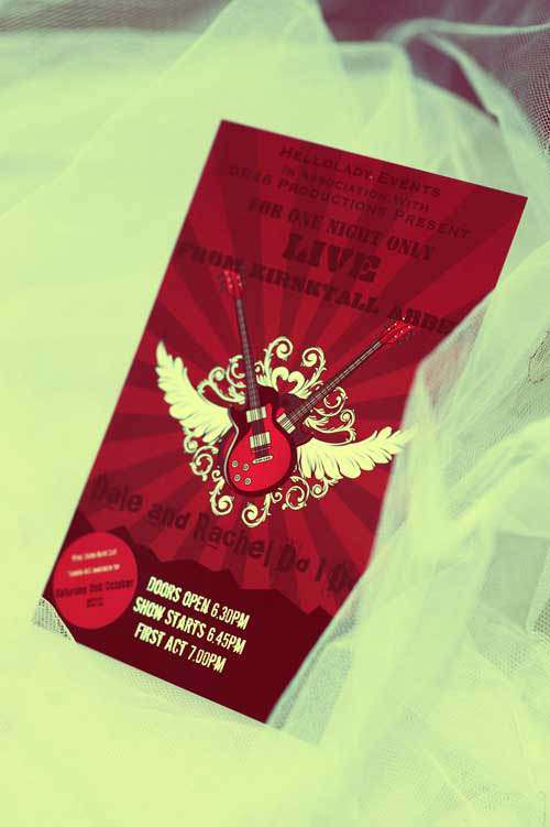 “Dale swaggered down the aisle to the Ecstasy of Gold by Metallica, I came in to Yellowcard’s You and Me and One Spotlight. Both songs complete with dry ice and choreographed lighting. My friend Belinda was our officiant (the funniest girl I know, she dressed up as a geeky priest for the occasion and even sang Nana Mouskouri halfway through the ceremony!) Dale’s daughter was his Best Woman and my oldest friend Louise was my bridesmaid, dressed in black with fab red shoes and not a hint of a puffy sleeve in sight.”
