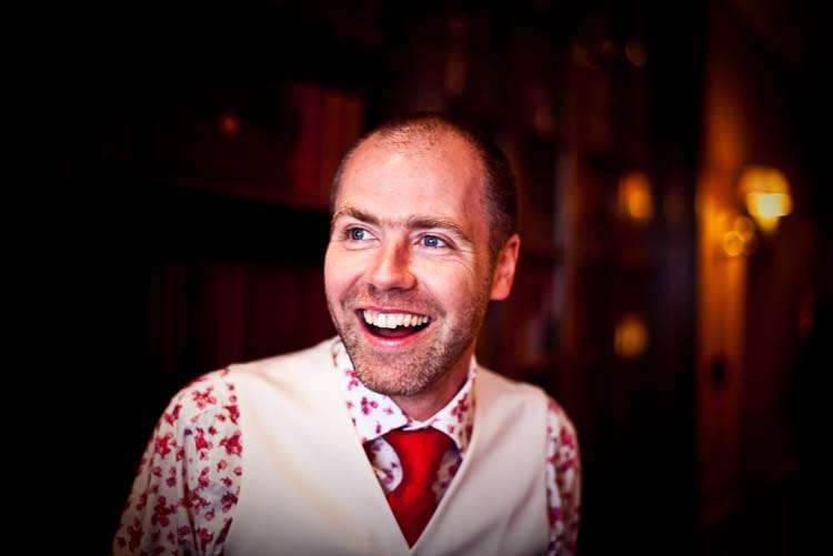 Sammy & Ian went for a quirky, modern and London theme for their Soho wedding. Being a costume designer, the bride made her own dress based on the late 50’s early 60’s silhouette of tight and knee length, with a bit of Vivienne Westwood influence. “It was made from red silk Dupion, and the corset was white duchess satin with red silk ribbon stripes sewn on top,” she explained.