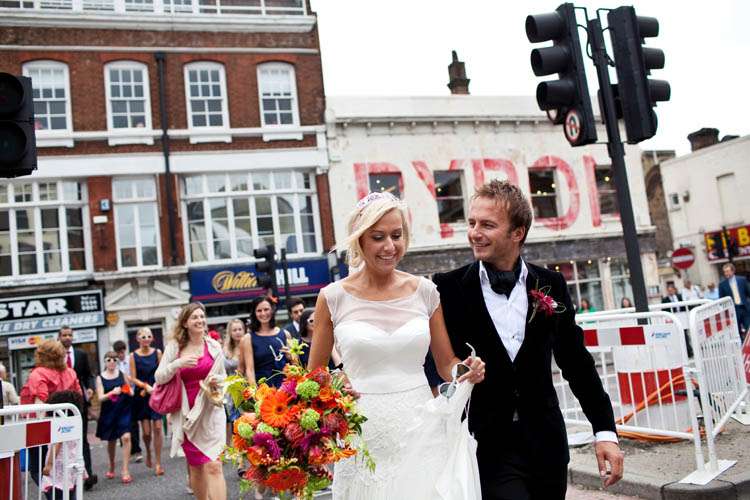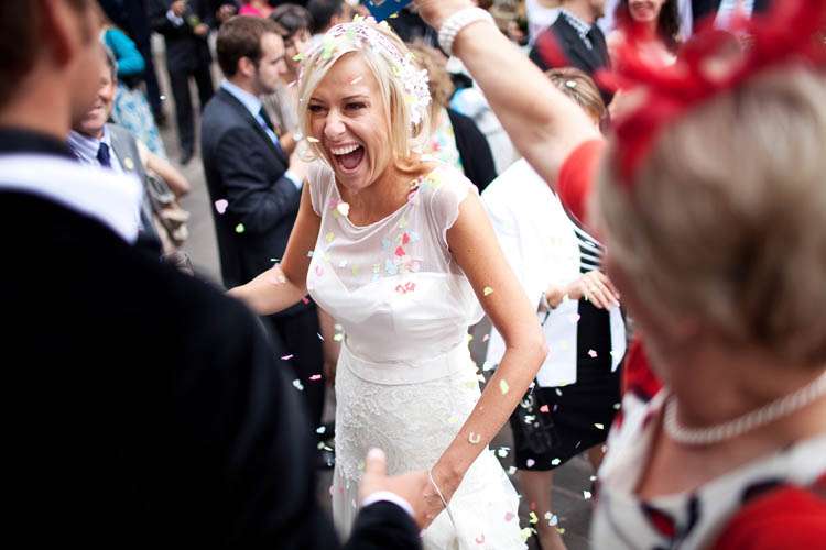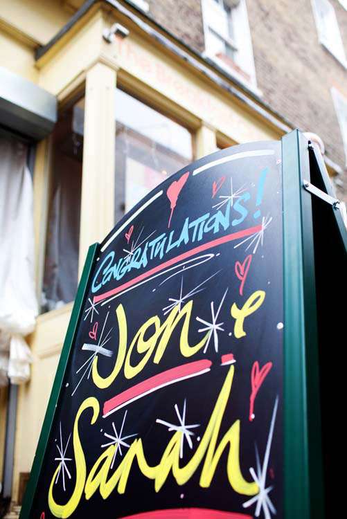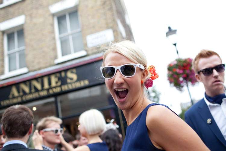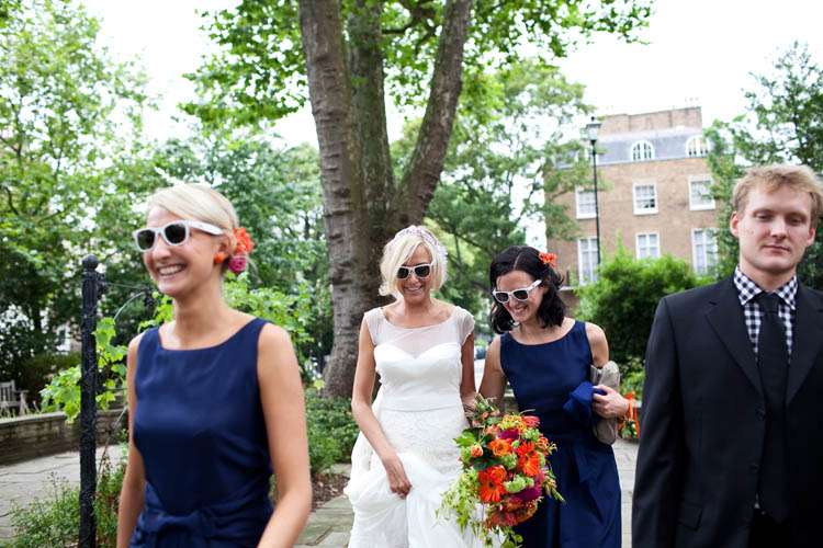 The wedding took place in August at St Johns church Duncan Terrace, London and was followed by a super cool drinks and canapes reception at The Breakfast Club in Angel. “The bar is one of Jonathan’s favourites and is round the corner from the church on the pretty Camden Passage,” Sarah told me. “This was great because the local businesses who supplied the wedding could join in, including the dressmaker! We served our favourite homemade scotch eggs, mojitos, champagne and also other retro treats.”