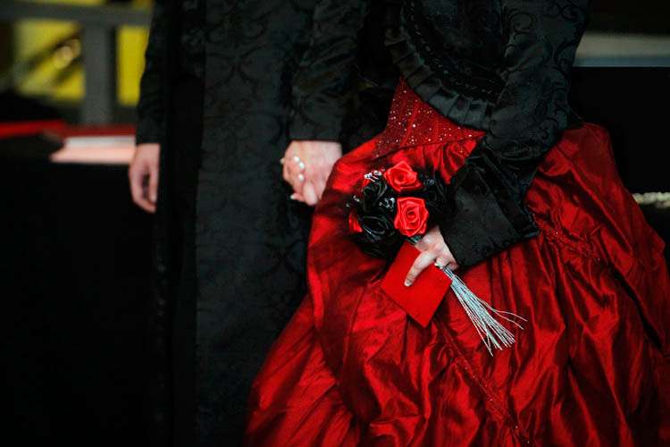 Gloomy and grey weather doesn’t have to spell disaster for your wedding day – and in actual fact I think the darker atmosphere and evening-only event worked perfectly for Sarah & Matt’s gothic-inspired wedding!