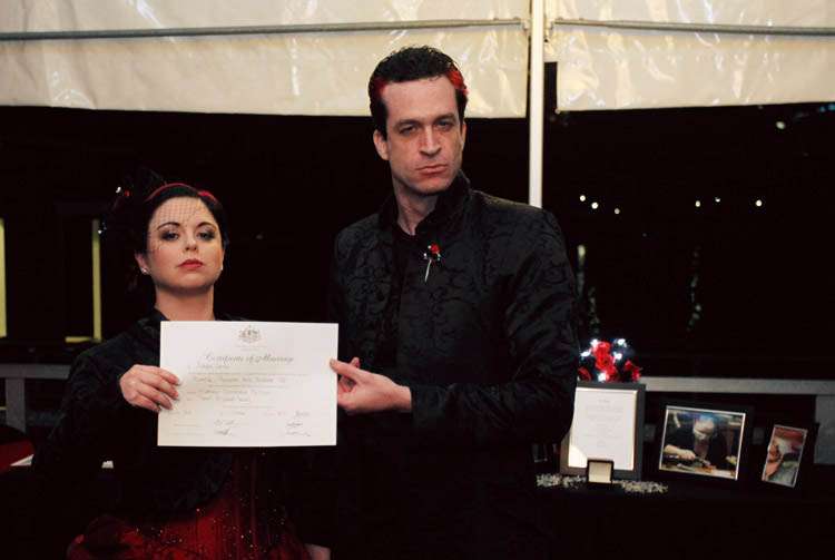 The couple made each other’s rings. Sarah also made her own fascinator and all the flowers, boutonnières, favours, centrepiece and stationary. They also chose to omit things they didn’t feel were important to them, for example the transport (they got the ferry!) a videographer and the cake, “We didn’t feel we needed one – a dessert option available with our meal appealed to us enough. It was Death by Chocolate!”