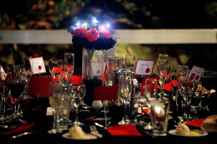 The wedding took place at Riverlife, an outdoor activity centre in Brisbane which also has a number of gorgeous venues, perfect for a wedding! The evening event started with pre-ceremony drinks and canapes for the guests. “We’ve been told that our absence at the start really added to the atmosphere, especially with our DIY decorations adorning the venue,” said Sarah when I asked about their idea behind this. “Neither of us were at the venue when the event started. We arrived after the guests had an hour of canapes. While the guests were awaiting our arrival, the decorations served as a talking point, and since they could see that we’d gone to so much effort on the tables, it added to their anticipation to see our outfits and everything else that was to follow.”