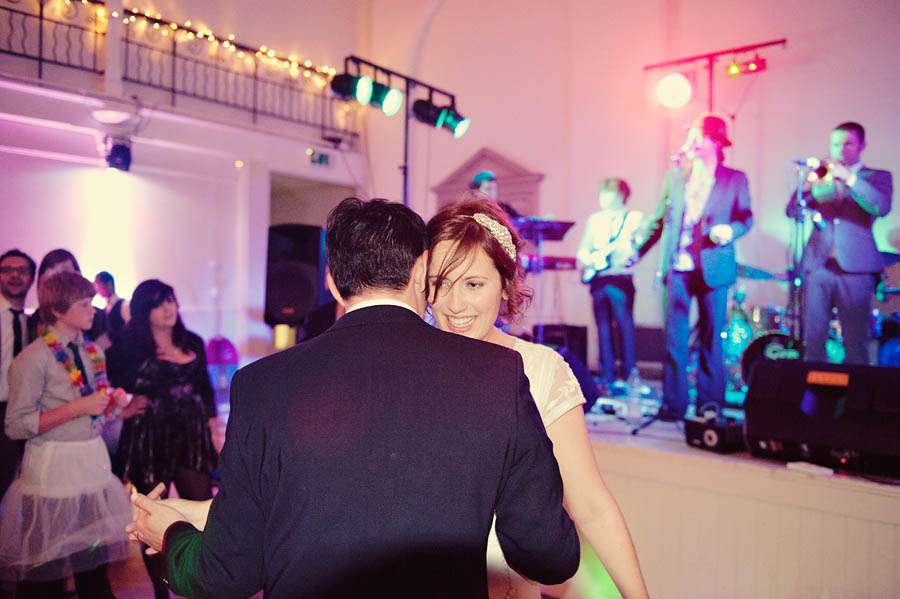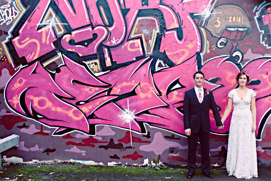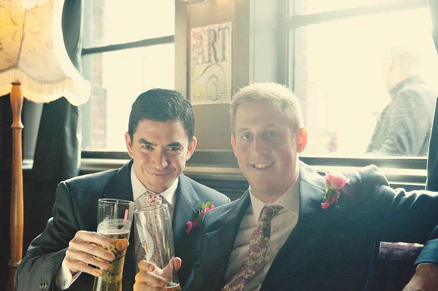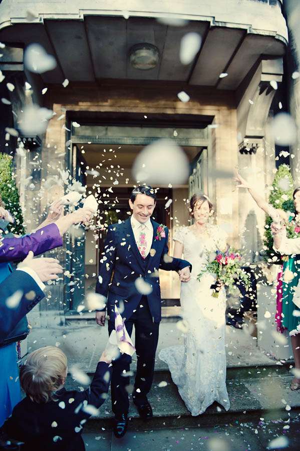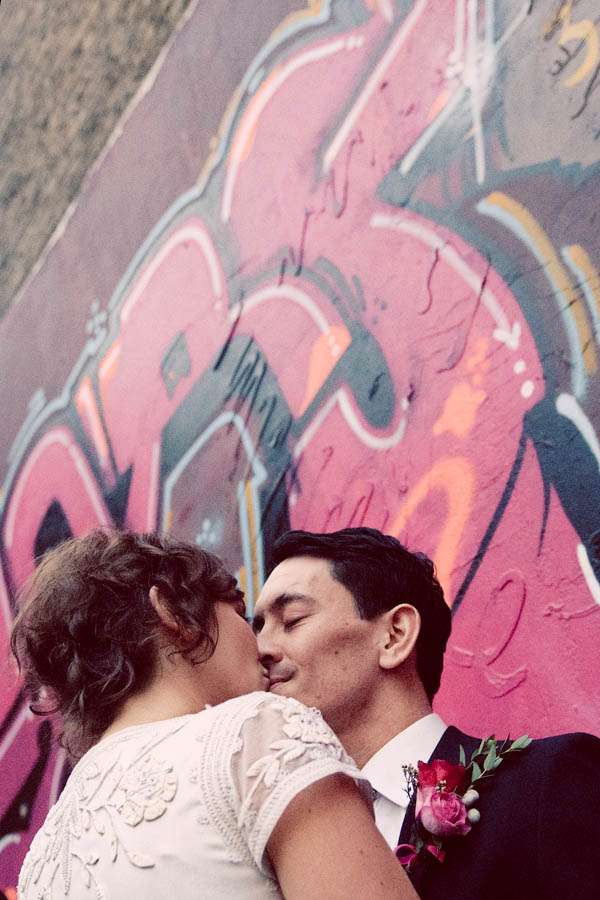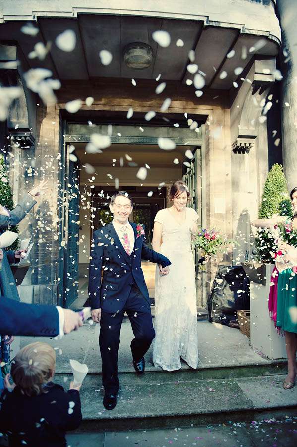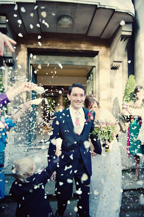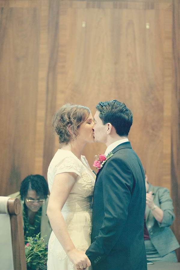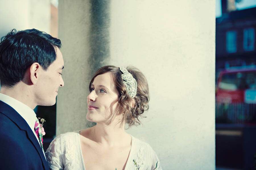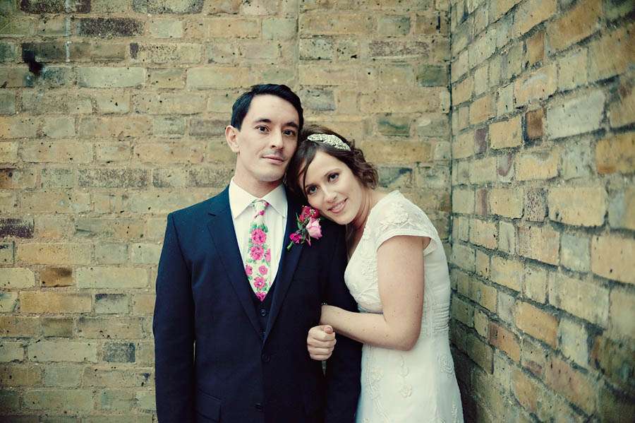 Sarah & Pete’s classy, vintage-inspired wedding took place at Stoke Newington Town Hall and The Tab Centre, Shoreditch. The bride, who originally didn’t even want a wedding dress wore a gorgeous Temperley number that she found in Bicester Village outlet mall just outside of Oxford. “I don’t really like wedding dresses!” she told me. “I was nearly going to buy a nice party dress in a bright colour after trying on quite a few wedding dresses which were just ‘ok’. I then spotted this one in Bicester. It is quite vintagey in style but still flattering (and not tiny weeny sizes like a lot of original vintage dresses!)” With this she wore a hair piece by Jenny Packham and vintage Gina shoes from Urban Outfitters.