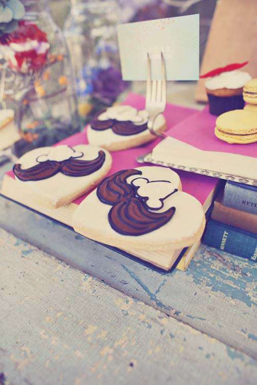 Moustache cookies (and shoes!), cute typography, mis-matched bunting, multi coloured florals a-plenty and a cake covered in different coloured bow ties (seriously dying over here.) Oh yes, this blogger certainly approves!