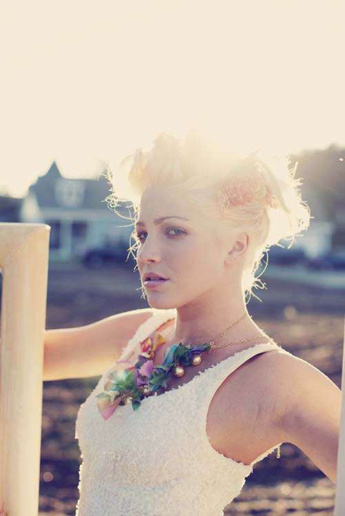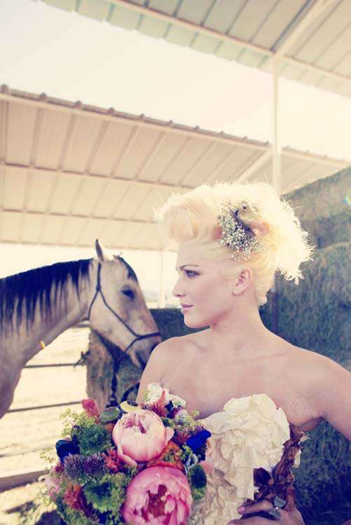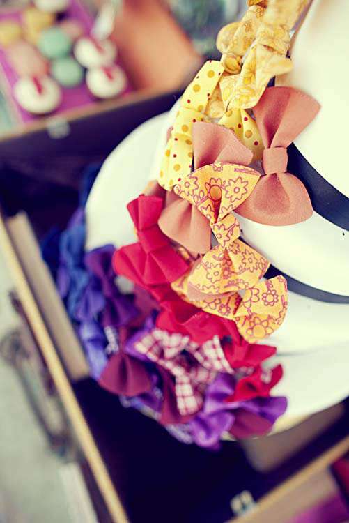 Eager to share some new trends for 2011, the team behind this shoot wanted to add a new dimension to some of the ever-popular wedding details that don’t seem to be going anywhere just yet (moustaches anyone?!) “We made sure to incorporate all of this year’s trends including bow ties, paper garlands, barn weddings, and moustaches,” Sugar & Fluff, the stylists behind the shoot explained. “We even exhausted the balloon idea with a dress made of them! Each balloon was blown up and then popped to give an effect that the dress was popped by a fork! Let me tell you it was not easy making.”