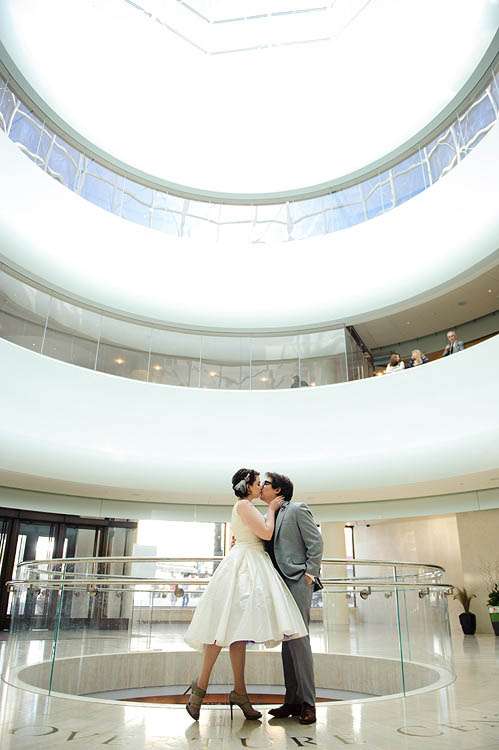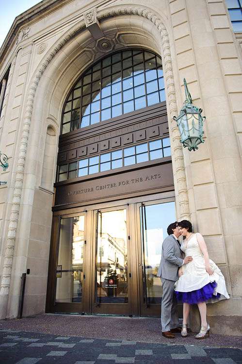 They didn’t want to conform to what anyone expectaed a wedding to be so they opted for an afternoon and achohol-free reception at Overture Center for the Arts, a performing arts centre. “We don’t drink and we didn’t want to blow our wedding budget on booze, so we had a non-alcoholic bar. Two bartenders were there to mix up non-alcoholic cocktails and make espresso drinks. Since it was the afternoon, no one really minded the lack of alcohol – and they got to try some new things. My specific request had been elderflower syrup, and we had a good time drinking elderflower sodas and lemonades.”
