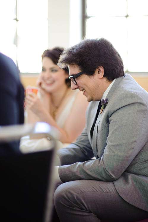 Zack & Alene wanted a casual, fun and nerdy wedding – something that was perfect for them. “We knew all along that we didn’t want to do a traditional dinner and dancing wedding, and there was never a chance of there being a church ceremony (neither of us has ever attended a church service outside of weddings and funerals),” the couple explained. “We settled on an afternoon of games and hors d’oeuvres because we’re both nerdy, think appetizers are exciting, and I like to go to bed early. It’s not our proudest tradition, but Zack and I go to my parents’ house most Saturday evenings and play games with them – it’s one of the highlights of my week, and we always have fun, so we decided to extend that feeling to our guests. The reception space was filled with couches and ottomans, and then we had a few little tables brought in – it was laidback and jolly, and the games gave even people who didn’t know anyone else something to talk about and bond over.”