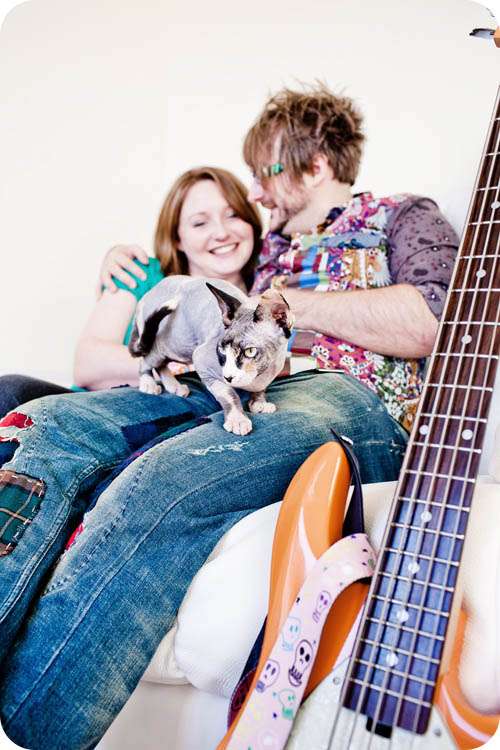 “We first came across Shell via an engagement shoot featured on Rock n Roll Bride. We loved the way she managed to capture colours, fun and love (all the important things in life!). After we got in contact with her, she asked us to provide a bit of info about us and, looking back at the emails I got verbal diarrhoea and listed of a whole heap of stuff. I mentioned our love of bright colours in everything (clothes, art, movies, music and animals. I mentioned our Sphynx cat (Uzume aka Zoomy – named after the Japanese goddess of joy and happiness) who we obviously wanted included in the photos as she’s part of the family! I mentioned that we got engaged in Venice; that Amanda makes colourful glass jewellery; that we ski… and the list carried on. Thankfully this didn’t scare Shell off and she seemed as enthusiastic as ever!”