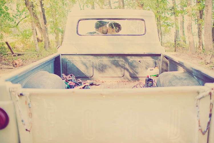 Cassie & John’s entirely DIY wedding makes my heart sing. Not only because of their totally authentic Rock n Roll attitude, but because it really was all about the lurrrrrve! “Our entire wedding was DIY. None of it would be possible without John’s mom. She made all of my ideas into reality. She sewed the burlap table runners (with ruffles!), made the bowtie and bandana for the dogs, and taught myself and my bridesmaids how to make and can apple butter which served as our wedding favors.”