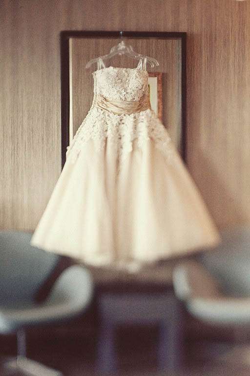 “My Mom actually was the one to find my dress for me. I had tried on numerous dresses at 4 or 5 different shops and was starting to feel like the right dress for me just didn’t exist. Every dress I tried on seemed to either try to make me look like a sex-bomb, woodland nymph, or a girly-girl princess – not to say those are bad things to be, but they weren’t me. I wanted something fun, classic, informal, and retro. I was almost to the point of attempting to sew something myself, when my Mom sent me an email full of dress links for me. Right at the bottom was a link to Justin Alexander 8465 and from the moment I saw the dress I knew that it was the one for me, no doubts in my mind.”