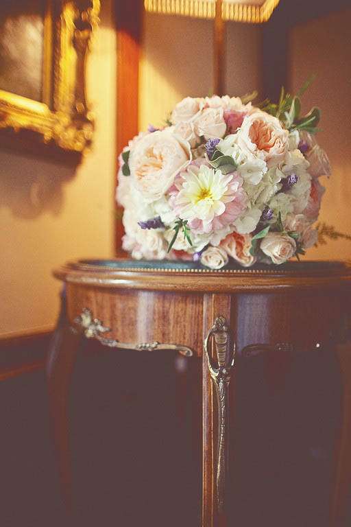 Melinda & Stu were married in September at Thornewood Castle, Tacoma, WA. “My husband had always envisioned getting married in a European Castle,” began the bride. “Unfortunately, I knew if we did that we’d have a very lonely wedding with just us and our parents, so we had to set our sights closer to… well, this continent. I didn’t think it would be possible to find what Stu was envisioning in the Pacific Northwest, until I stumbled across Thornewood Castle. The Tudor manor house was originally build in England in the 1500’s, but in 1910 it was moved brick by brick and reassembled on it’s current site on American Lake in Tacoma, WA. We had the ceremony in the sunken rose garden, and the reception in the great hall, dining room, and loggia.”
