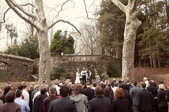 The decor and reception ideas were all DIY’ed by the couple and their friends & family. Mo explained, “My Dad made his amazing meatballs and my Mom brought munchies for the cocktail hour. My Mom was a HUGE help in organizing set up the morning of the wedding. My Uncle Rich BBQs competitively and offered his BBQing skills as a wedding gift. He BBQed his delicious pulled pork and chicken. Aunt Terry pitched in and made the Baked Ziti with my Aunt Kathy. I surprised Chris with his favorite chocolate cake from Honey’s Sit N Eat. Friends of ours offered their catering skills to manage the potluck table and keep everything flowing. Another friend offered to bar-tend in exchange for a tip jar. We had our favorite Yards beer selections and handpicked the wine. My Aunt Pat donated the coffee and rolls as a wedding gift. My family loves to cook and so do many of my friends so I had no doubt the potluck would be awesome. The rest of the food for side dishes and desserts was all potluck from my guests. We gave them recipe cards with the invitations so we could build a wedding recipe box to keep.”
