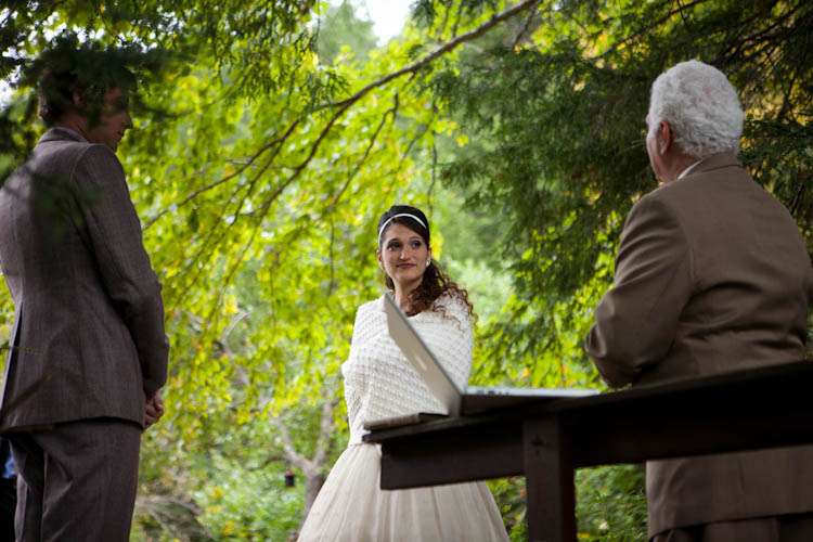 “I refused to walk down an aisle. I know there are some women who want their wedding to be all eyes on them all day. Not me. I am not comfortable with all that attention. But how do you get to the front of a room without walking there? We got married by a small bridge over a creek, so instead of us walking to the front, we waited on one side and had our guests walk across to us.”