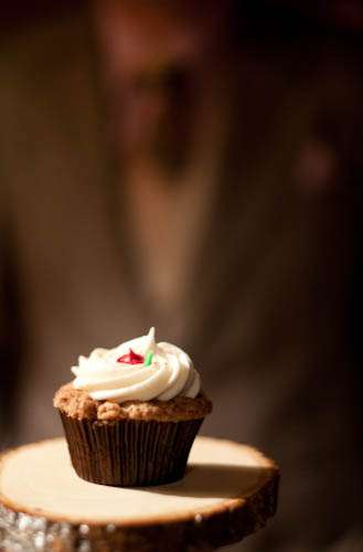 “I asked every guest to bring a cupcake as homage to the tradition of wedding cakes, a story I have loved since first hearing it years ago. The evolution of wedding cakes can be traced back to a time when all guests would bring a small cake or biscuit to a wedding as an offering. The couple would pile the cakes on top of each other and if they could kiss over the cakes it was considered good luck. Couples started using icing to glue the cakes together in an effort to keep them from toppling over and the wedding cake was born!”