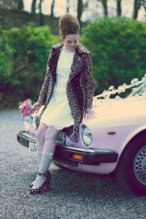 Shelly invited planner Kelly (of Boho Weddings) and Asher to model for her. “I knew I wanted mini dresses in a Mary Quant style and Debbie over at Danielle Lara Couture created these two especially for the shoot. When I went to collect them, I ended up picking up a couple of others at the same time – I just couldn’t help myself!”