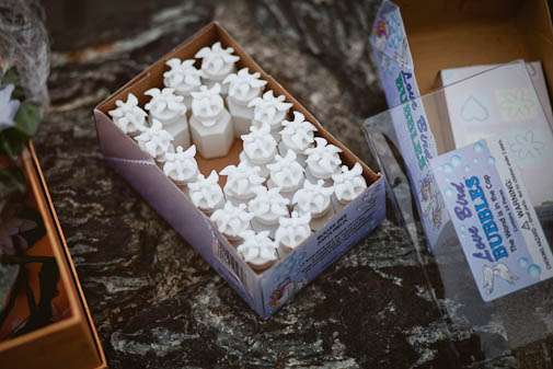 The ceremony took place at Flying Duck at Roma St Parkland and the reception was held at The Fox Hotel. Alex wore a one-of-a-kind dress which she made herself with the help of her best friend. “It was handmade with materials and pattern sourced from Spotlight Australia by my best buddy / best lady on the day. I’d probably say it’s most definitely a one off by ‘Sary Creations’ – she’d get quite a giggle from that,” laughed the bride. They also handmade her flower headband as well as all the bouquets with silk flowers sourced from FJ Flowers. The reception decor and details were all also mostly DIYed, from materials sourced from Spotlight Australia.