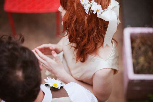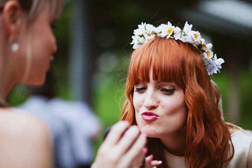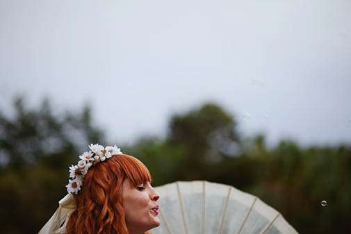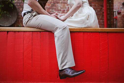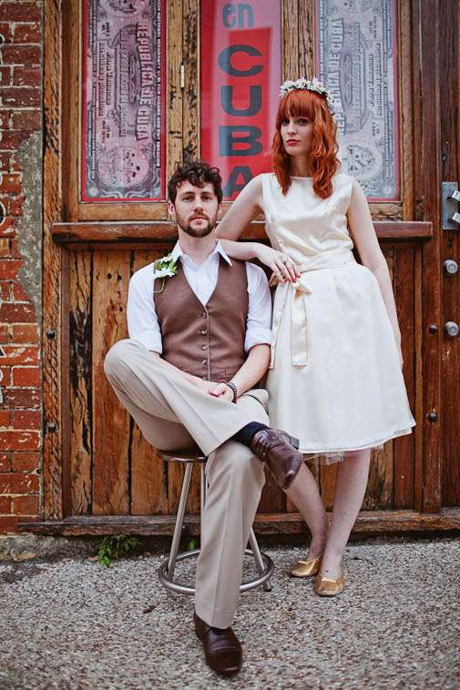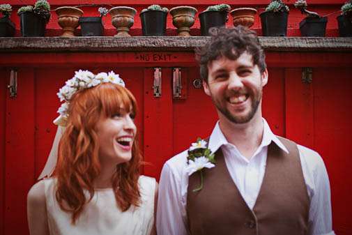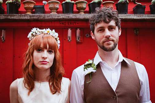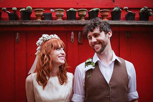 British born Alex met Adam years ago whilst working at Woolworth’s. She was studying journalism and he was a checkout boy by day, rock star by night! They went their separate ways for a few forgotten years before realising at a Jet gig that they were better off together. “We are the total yin and yang couple who jigsaw together in a strange and puzzling way which somehow works,” they explained. “Fiery Alex and passive Adam! Our wedding was a mashup of our two personalities which resulted in a simple, nerdy, unrefined yet rocking shindig.”