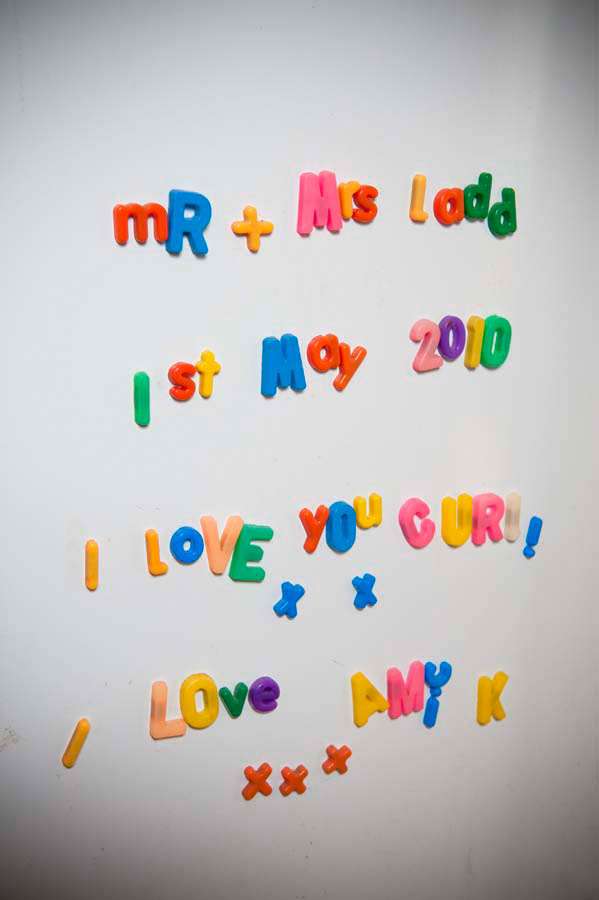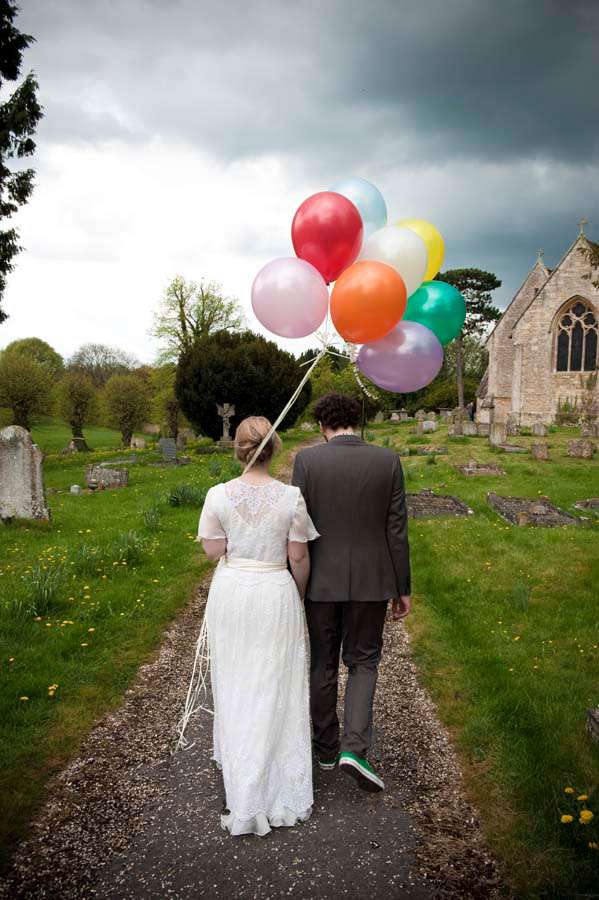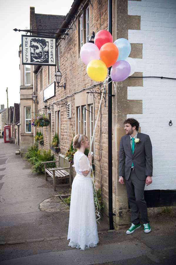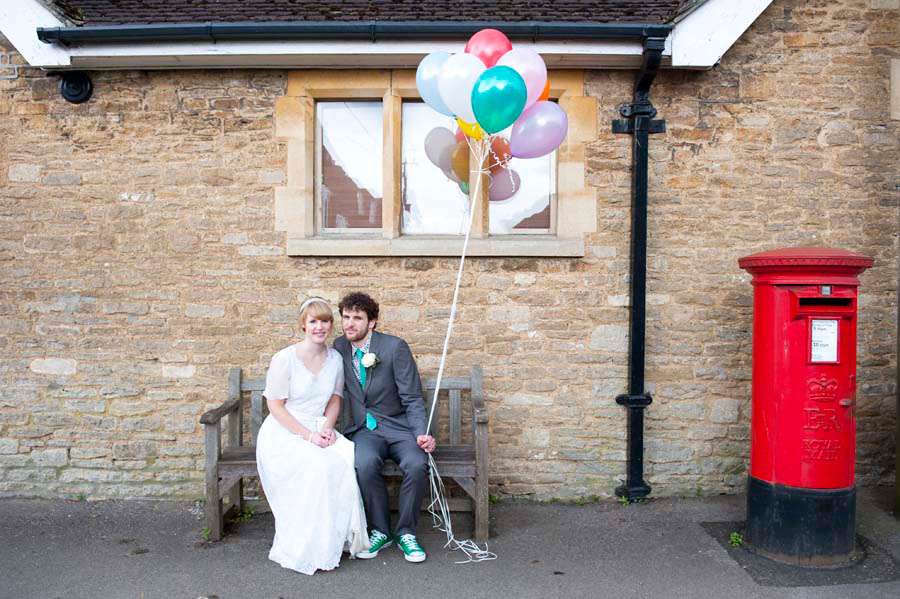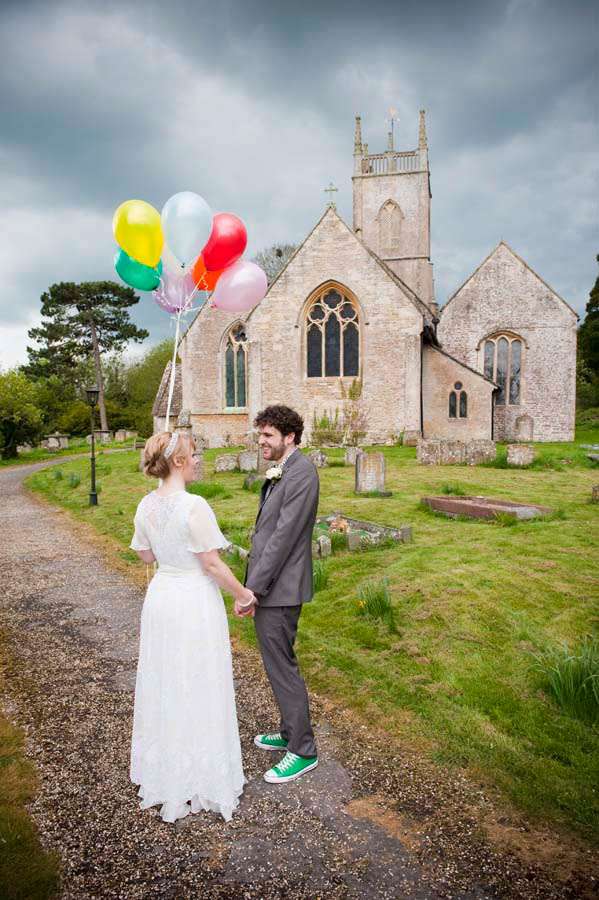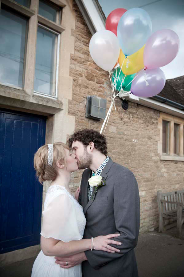 The ceremony was held in Kington St Michael Church, Wiltshire and the reception that followed was at Kington St Michael Village Hall. “We tried to do as much as possible ourselves so the wedding would be as personal as possible,” explained the couple. “We had our wedding in church and then walked across the road to the village hall which we had decorated the day before with our family and friends. It made the day very personal and very different. We hung bunting that a friend had lent us, fairy lights, union jack flags etc and had jam jars of flowers on the tables. We made favours of jam and chutney that doubled as place names.”