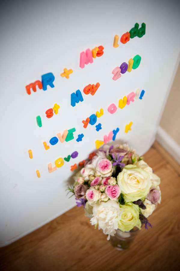 “We tried to keep things fairly traditional but with our own spin on it and we tried not to be limited by what a wedding “should” be. So many weddings seem like the same thing over and over but we wanted ours to stand out. We made summer berries gin for the toasts by adding raspberries, strawberries and blackberries to gin with sugar and letting it sit for four months. Then we removed the fruit and we had pink gin! I also made the cake topper after a visit to Hobbycraft!”