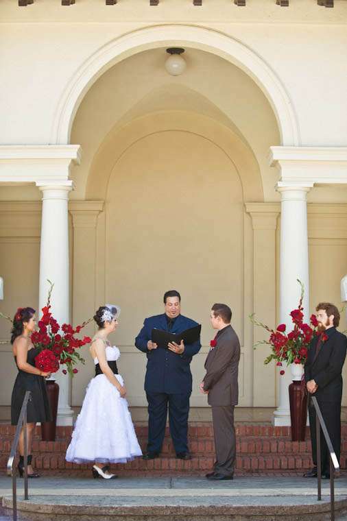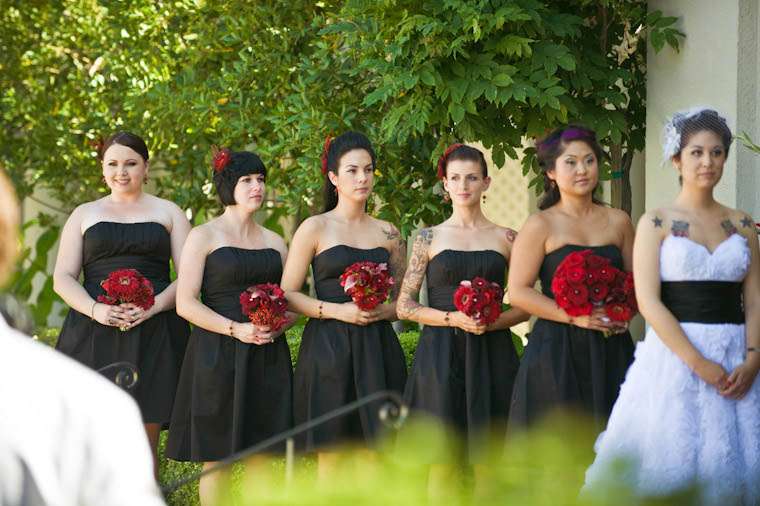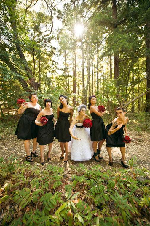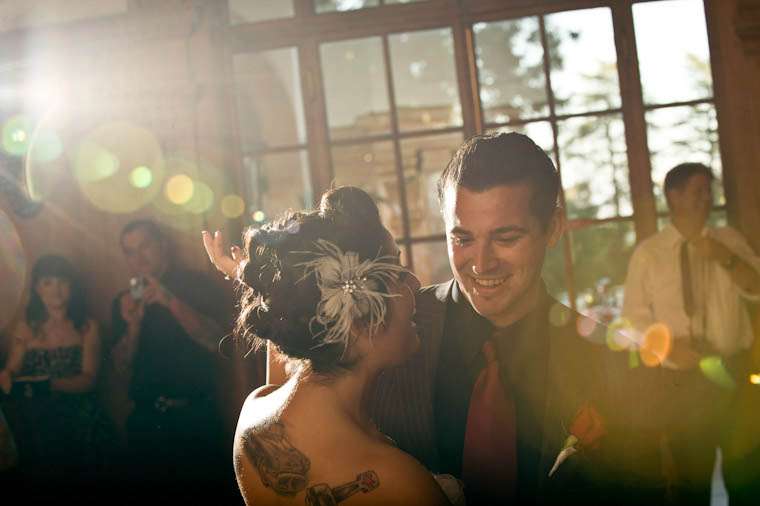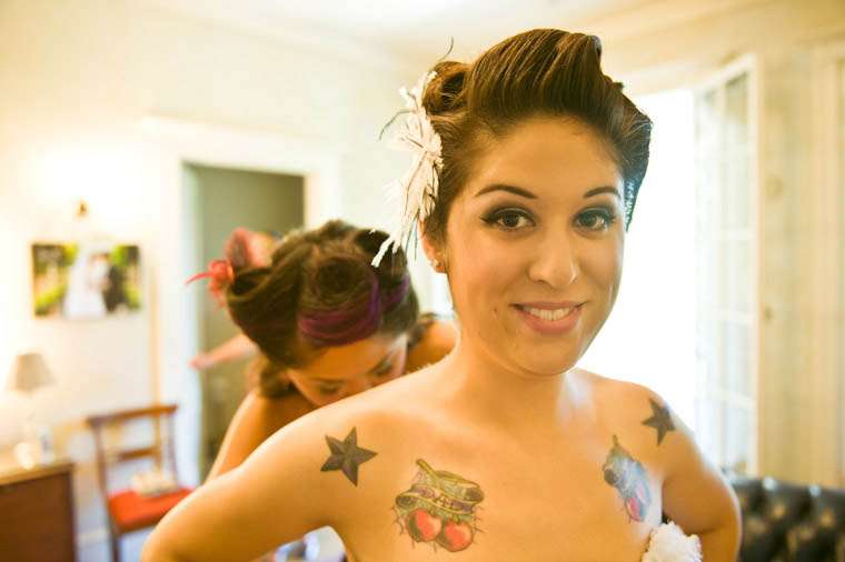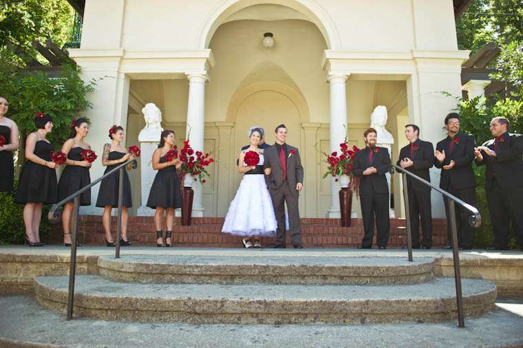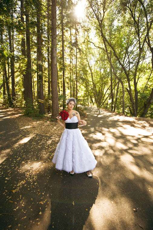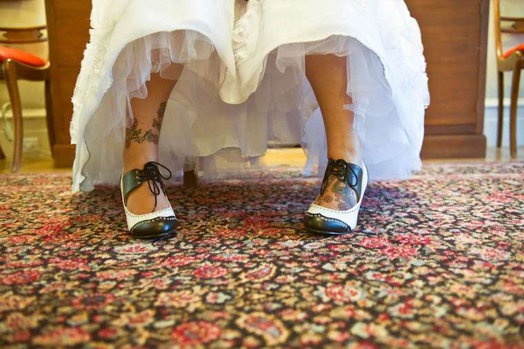 So it was themselves and their own personal style and outlook on life that inspired their rockabilly wedding. The Californian couple made the wedding their own and wouldn’t have changed a thing. Jenn’s dress by Allure Bridals wasn’t perfect for her until she cut it short herself to show off her awesome saddle shoes. Aren’t those gorgeous?