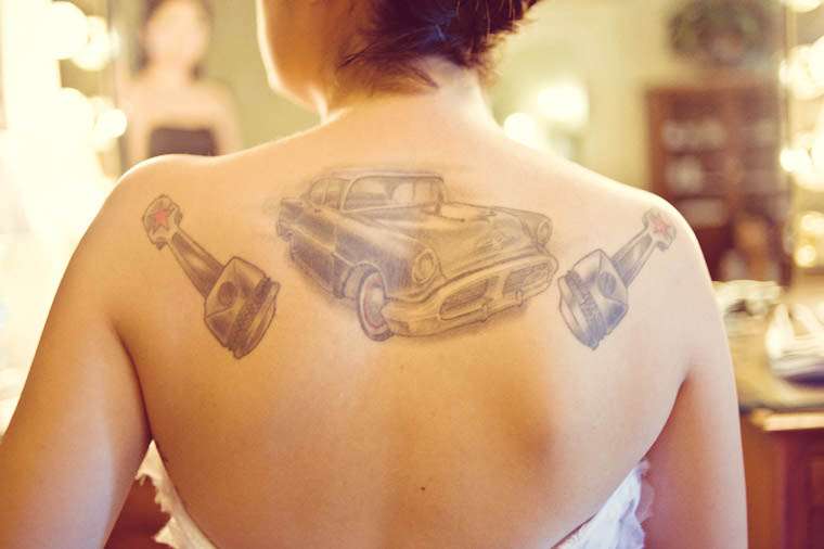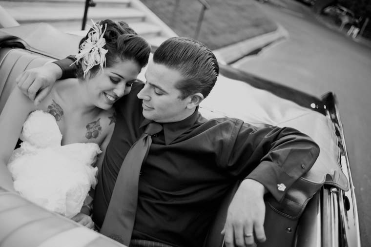 “The style and ambiance of our wedding had more to do with who we are as people than outside inspiration,” newlywed’s Chris & Jenn explained. “We find culture and appeal in a simpler moment in history. The 1950’s are, after all, the birth of subculture; car culture was at the heart of this movement. We live, breathe, and bleed this car culture so it followed suit to incorporate our life into our wedding.”