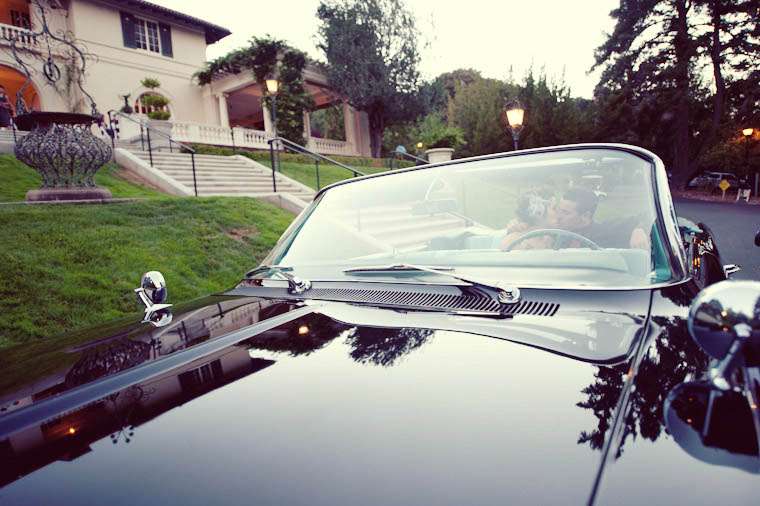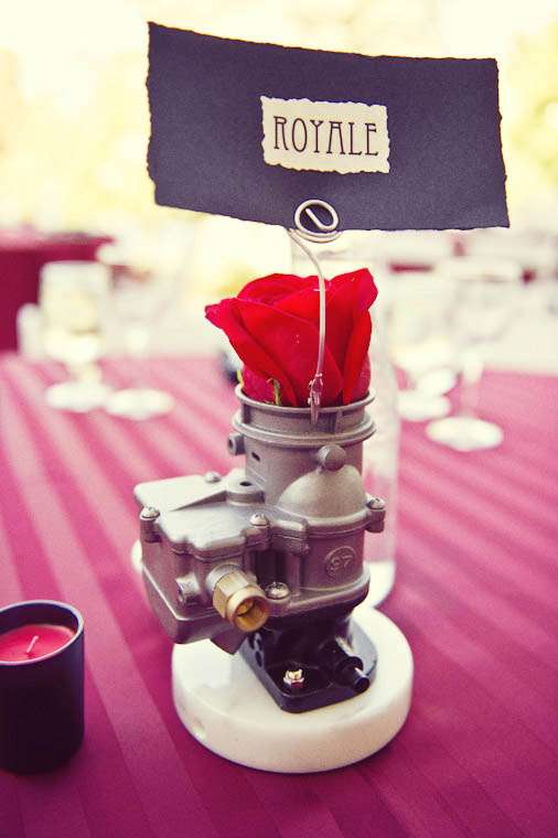 Chris wore a custom suit and he was in charge of the centrepieces, made from carburetors, and yes he made them himself! Finally, the couple belong to a car club called Koffin’s Car Club in Santa Cruz California and they had a whole host of retro cars at the wedding parked outside the venue.