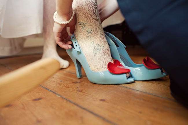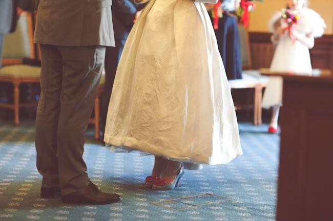 The dress was altered by Dragonfly Dress Design. She added a petticoat (for showing off the Vivienne Westwood shoes of course!) “She specialises in vintage dresses,” Debs told me, “and through her whole time in the dress business has only ever once came across a dress like mine! It is a very rare dress from the late 1940’s but with a 1950’s style, as it was very simple and classic. I also came across dragonfly through Rock n Roll Bride, again a big thank you for helping me source what is so close to home that I would never have known about.”