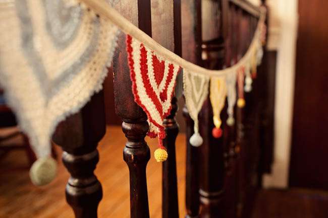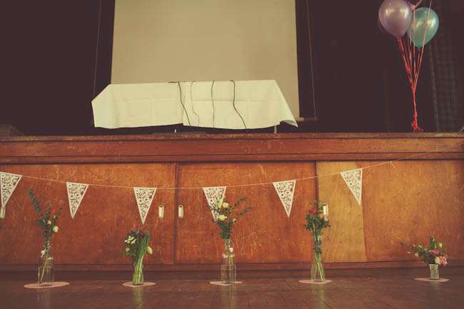 “For my degree show I studied photography for my last part of my final and photographed tea cups, I had a small collection started and I love the beauty of the china tea cup and how they were all different! So I was on a mission to collect as many as I could, as these would be my favours by melting wax into them and making them into sweet candles for guests to take away. Everything was hand crafted by myself from the favours, to the felt love heart badges guest wore, to the pom poms and flower garlands that hung in the hall.”