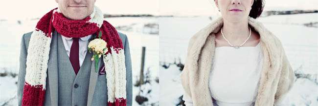 She explained, “Having 6 months left before the big day I had still no clue what I wanted my dress to be like, all I knew was that I wanted it to be different and my favourite word again Vintage!!! Someone had told me about a small charity shop in Govan (Glasgow), which is not renowned for being lets say…. stylish, but I knew with an older generation, there would be a few treasures in the shop. The shop was called Magpie’s Nest which was a prefect name for me! I was amazed by the selection and quickly filled my bags with teacups, I got talking to the lady behind the counter and asked if she specialises in wedding dresses or knew any places as there were a few wedding dresses hanging up! We got talking and she went into the back and came out shortly holding a beautiful dress, I knew that this was the one that I was getting married in! It was tiny and asked to try it on, in a small bathroom I squeezed it on and to my disappointment I could not get the back up, but I knew that I wanted it and thought there must be a way to get this dress to fit. It was elegant, long shelves for the winter and was simple so I could accessorise. My beautiful dress came to the grand total of £15 and as she packed it away in a Farmfoods bag, I skipped down the road with the biggest smile on my face, greeted by Richie saying what’s in the Farmfoods bag? and I said “my wedding dress!!!”
