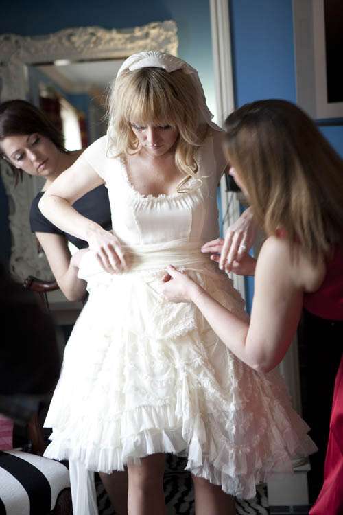 It was The Great American Music Hall that played host to Holly & Michael’s wedding. It was the couple’s love of a good party, Rock n Roll and quirky fashion that inspired their day. “The team behind Union Square’s uber chic Shotwell Boutique, Holly Kricher and Michael Weaver are style savants who’ve worked their way into the hearts and minds of San Francisco’s fashionistas in a very short period of time,” explained photographer Christina about the couple, “So, it makes sense that their wedding thoroughly reflected their fashion-forward sensibility.”