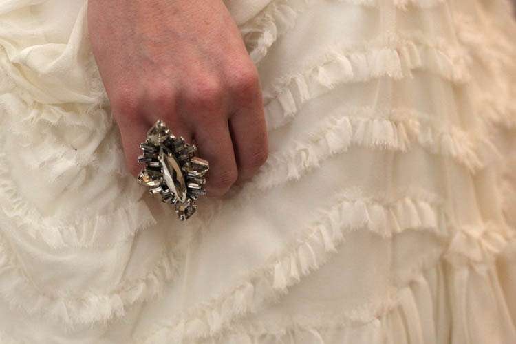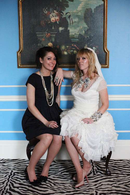 The couple thought about all of their details carefully and as well as DIYing a lot, had set designer Courtney Atinsky on hand to help them transform their vision into reality. Instead of flower petals, the “flower girls” threw small cloth butterflies down the aisle which they purchased from Micheal’s. They also wore black leotards with tutus. The favours included vintage-style costume jewellery, such as brooches, rings, and earrings, doubled as table decorations.