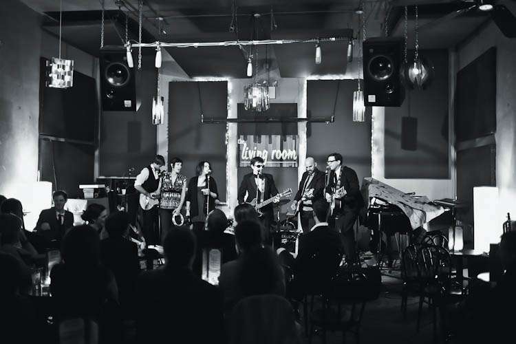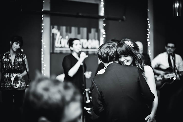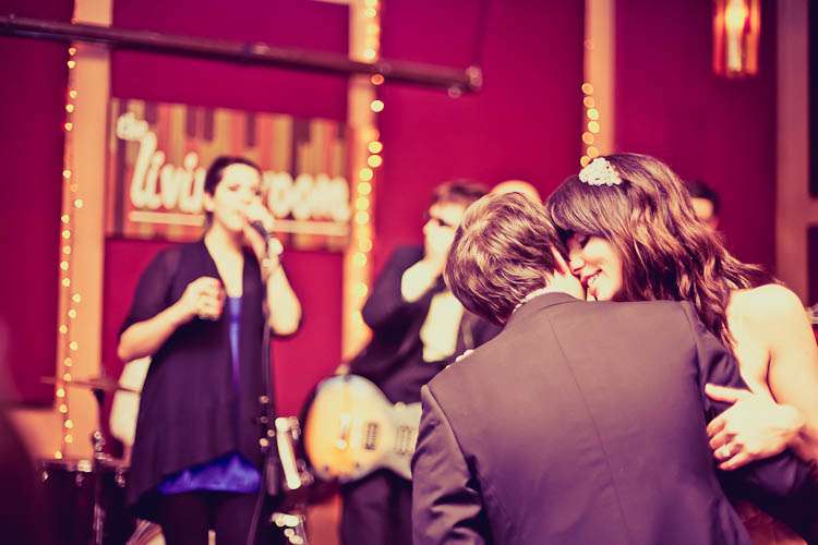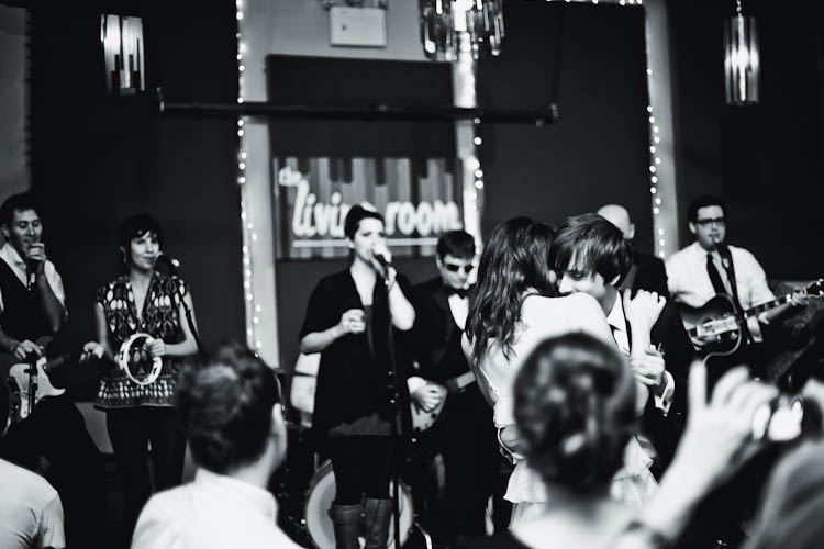 After the main reception came the after party which took place at The Living Room, NYC. Here, the hardcore party-heads danced the night away to the band Rawles Balls, friends of the couple. The bride changed into a cute, short, pink and ruffled number so she could really dance her socks off!
