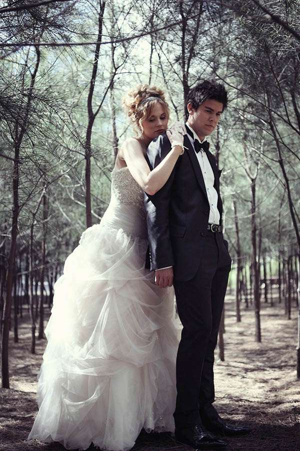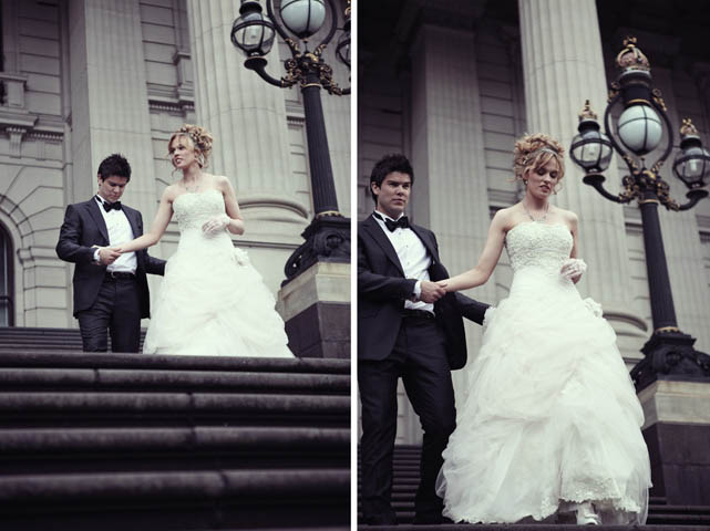 “Virginien and I met at a party in Australia after Virginien arrived for a working holiday only 5 days prior”, Jodie continued. “We instantly feel in love…Virginien didnt speak English..but that didnt matter, he still managed to woo me with his French accent…that was two years ago. We were separated for a total of 4 months when Virginien had to go back to France to get a visa to marry me…that was really hard…but we made it through in the end. 20 of Virignien’s family and friends were able to travel to Australia to share in our marriage. Thank you we love them all!! Virginien proposed to me one year ago. I came home opened my room and there were like three big Alannah Hill bags and boxes and flowers. I was so overwhelmed. He had brought me an entire outfit, right down to matching stockings and a hat from my absolute favorite store! I opened the card and it said be ready in your new clothes in one hour. A limo arrived and took us a beautiful restaurant where he later proposed to me with my ring on our soufflé! It was a big surprise!”