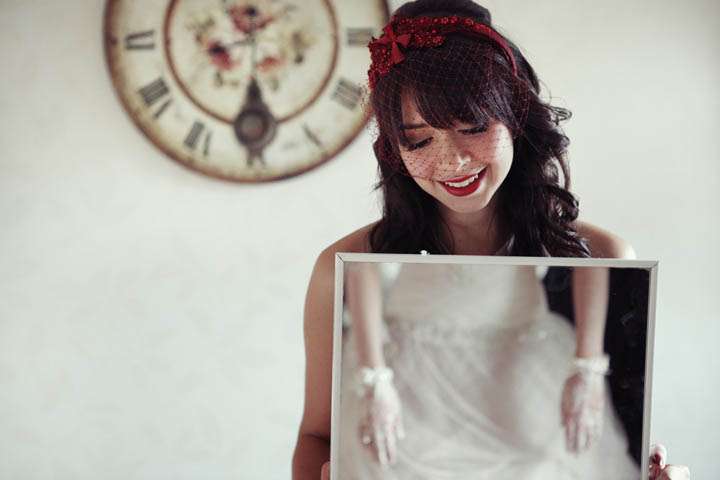The wedding was held at Overnewton Castle in Keilor, Australia. “Our inspiration was what we love and who we love!” explained the bride. “We wanted everything to be exactly as we imagined which meant having to make most things our self. We wanted things to be different, unique, but still whimsical and fairytale like. We love Alannah Hill, Disney (yes I know its Corny..but we’re obsessed), diy tutorials, The House of Frankie Stuart fabric shop, Ralph Lauren, and all things French.”