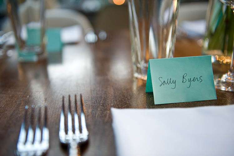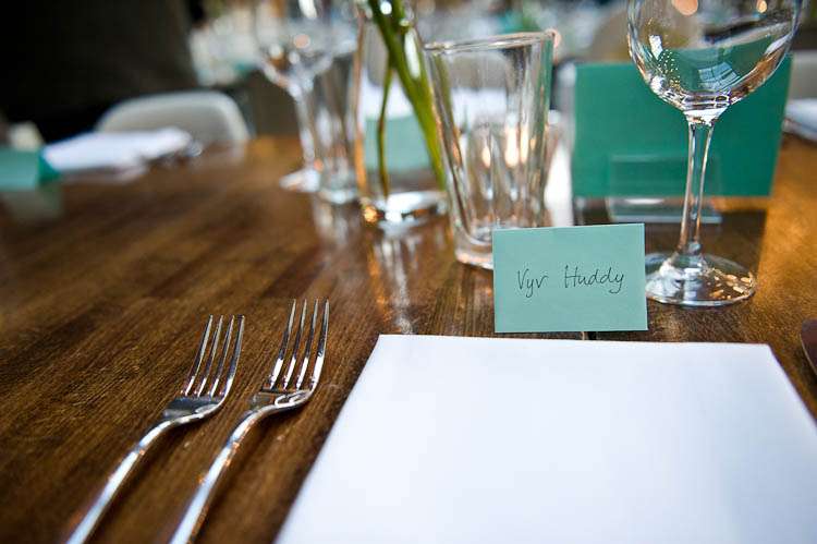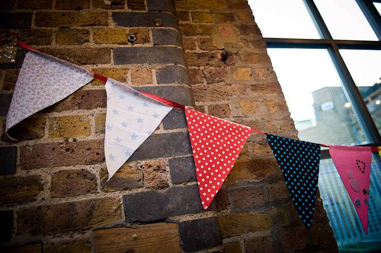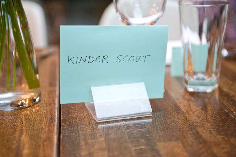 “Our table decorations were crafted by my Mum and brother the day before and tables were named after hills/mountains Vyv and I have climbed together. The bunting I sent out by post to guests and they decorated them and posted them back in time for me to staple them together.”