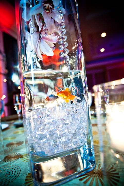 At the reception the couple filled the room with details that meant a lot to them – fish in the centrepieces for good luck and tattoo details becuase they are both heavilty tattooed. Each table was also given a name that meant a lot to the couple.