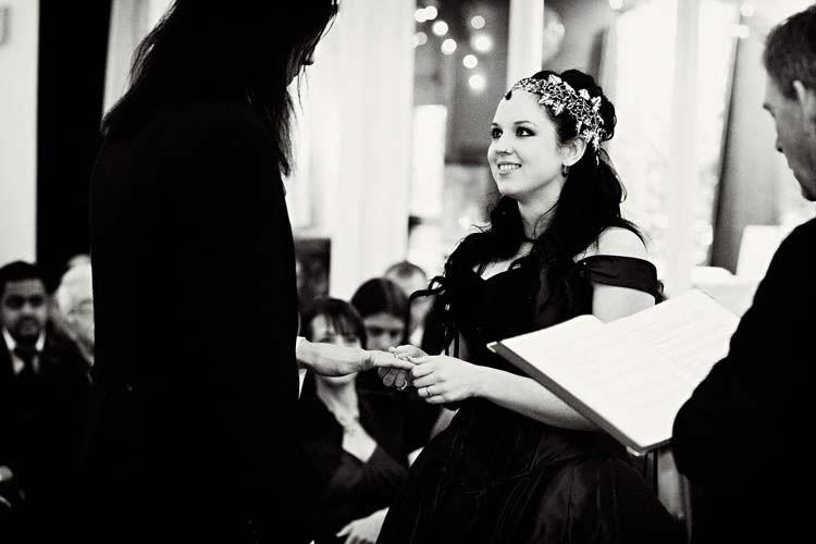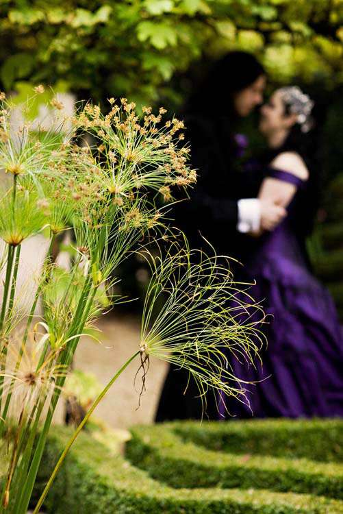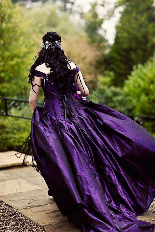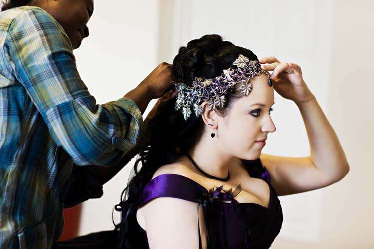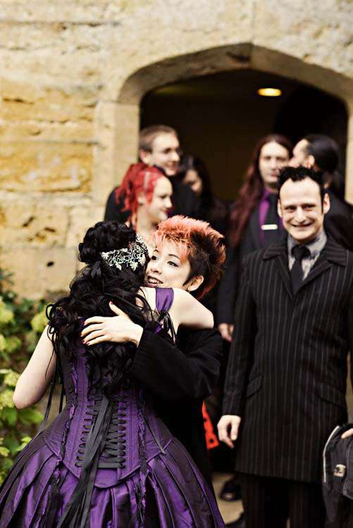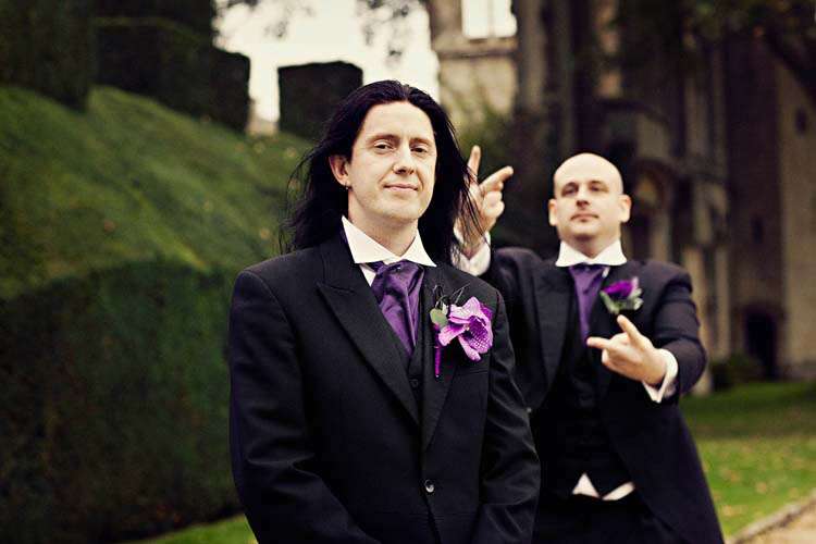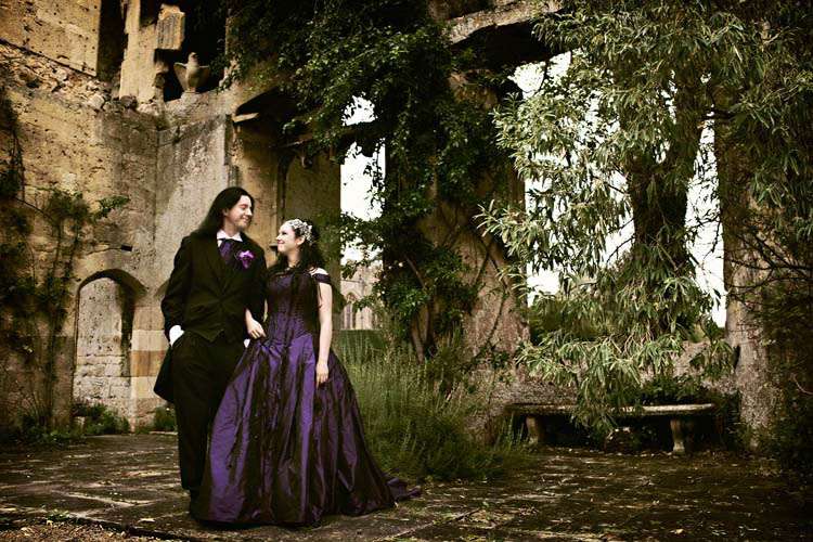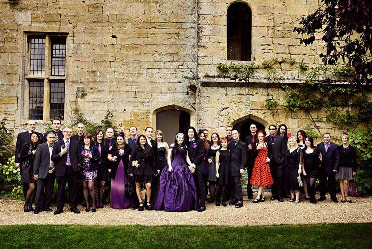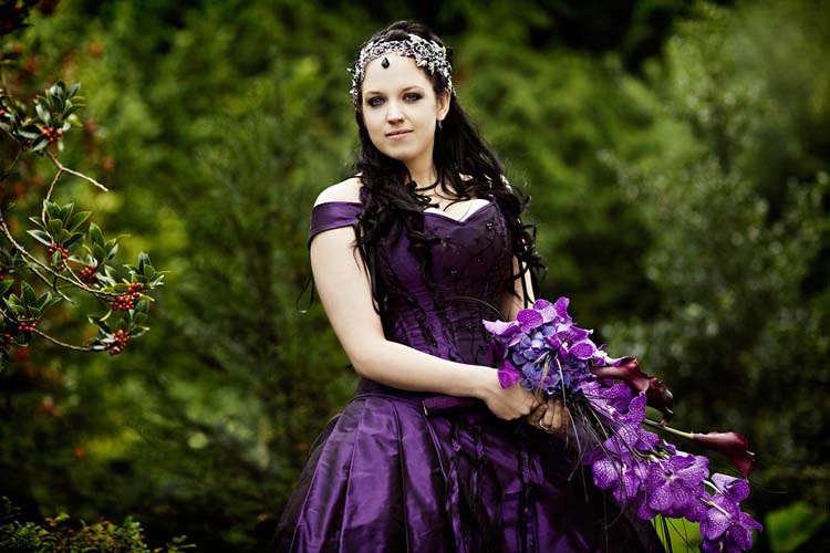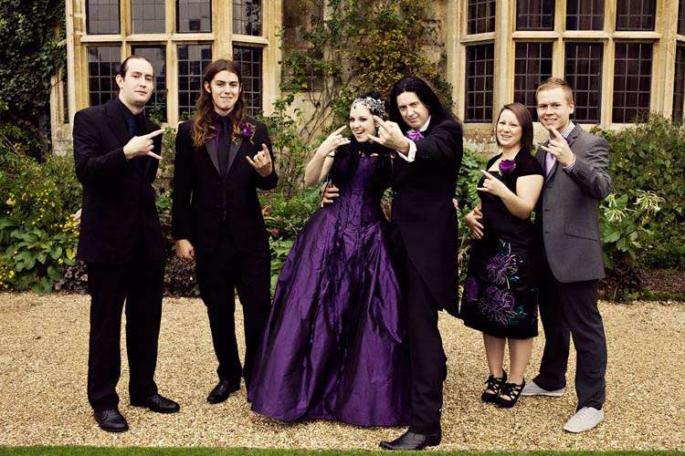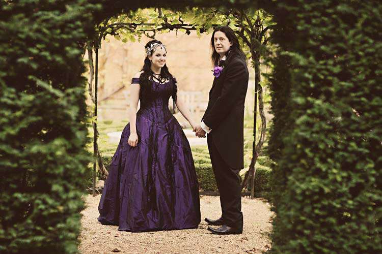 Victor & Tori’s dramatic, slightly gothic – totally fabulous British wedding totally hits the nail on the Rock n Roll head. As soon as these landed on my desk I was instantly smitten with Tori’s wicked deep purple, handmade gown by Janice Whitehorn of Uptight Clothing, “My bridesmaid sent me the link to Janice’s website and I loved her styles,” explained Tori. “I went for a consultation and I told Janice what I liked and didn’t like, and she came up with the most amazing dress/corset that made me feel like a princess, along with the headpiece which was modified from her original design and all the jewellery.”