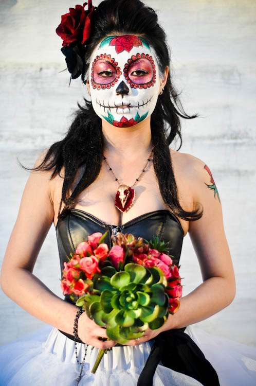 Jacqueline & Erik were the lucky models who got to play dress up with Michelle Logan of Urban Shutter Bug Photography. Jacqueline had this killer idea to have a shoot styled around the Mexican holiday Dia De Los Muertos (Day of the Dead). What might seem like a morbid theme to some, Dia De Los Muertos is in fact the exact opposite – it is a celebration to honour your loved ones who have passed.