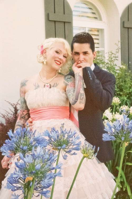 I’ve got another couple that you might recognise adoring these pages this afternoon. Do you remember this incredibly gorgeous vintage, floral and tattooed bridal shoot? Well the wedding to go along with the stunning shoot is just as visually gorgeous.
