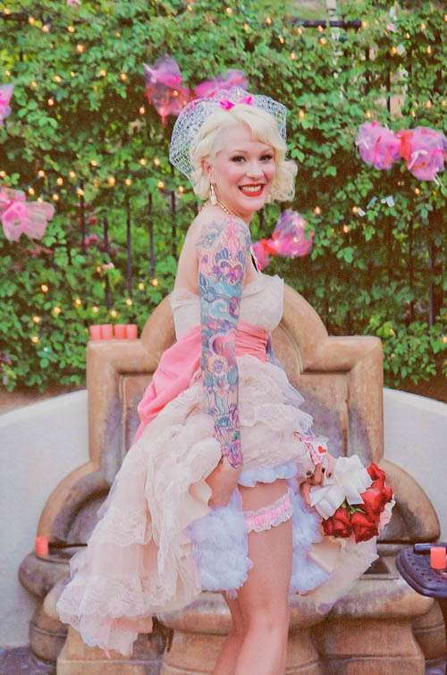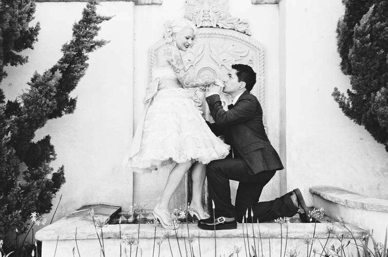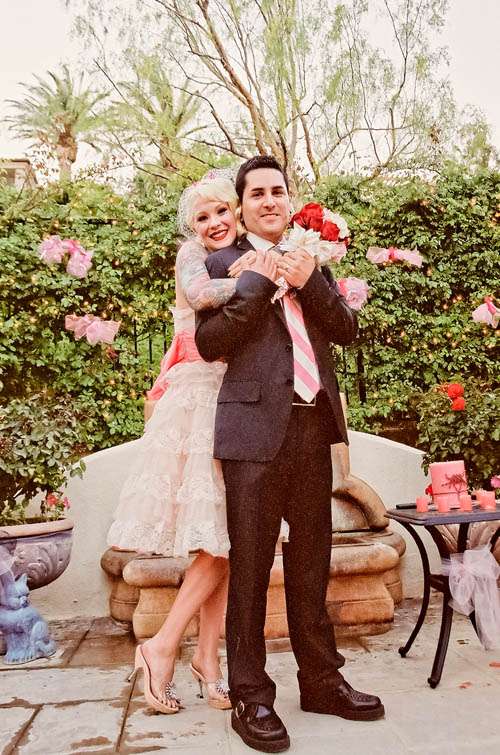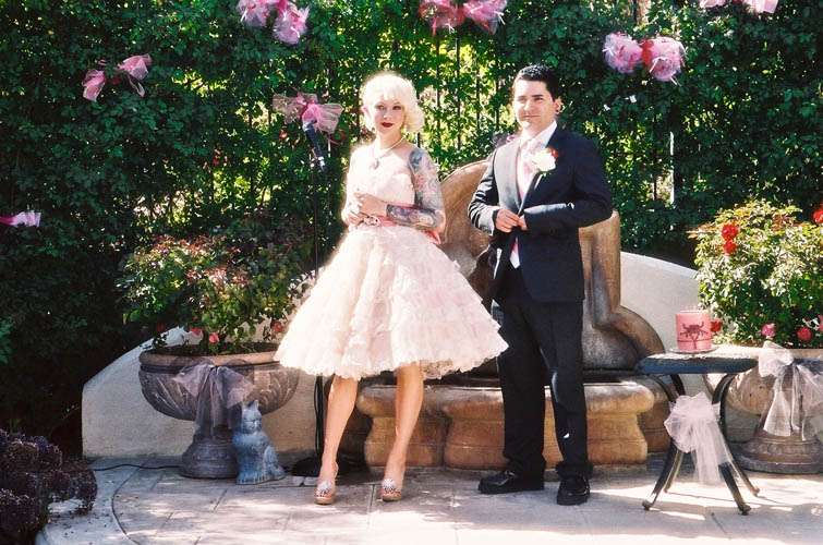 Kelly wore the same Betsey Johnson dress and shoes that she looked so beautiful in on her bridal shoot with Tarina Tarantino jewellery. She carried a vintage handkerchief from Pasadena flea market.